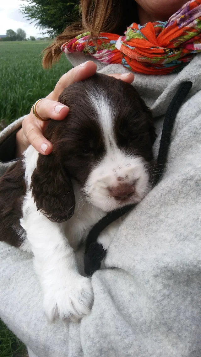 Aber erst der English Springer Spaniel hat mich noch mehr innerlich bewegt. 2012 zog dann zum ersten mal ein ESS bei mir ein, eine Hündin mit dem Namen „Soete“. Sie veränderte vieles bei mir.